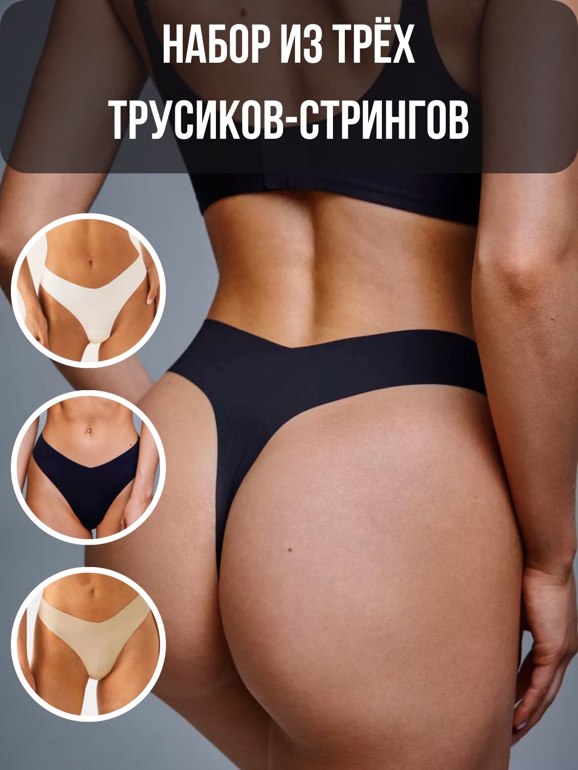 Трусы бесшовные стринги набор 3шт. Размер 44-46