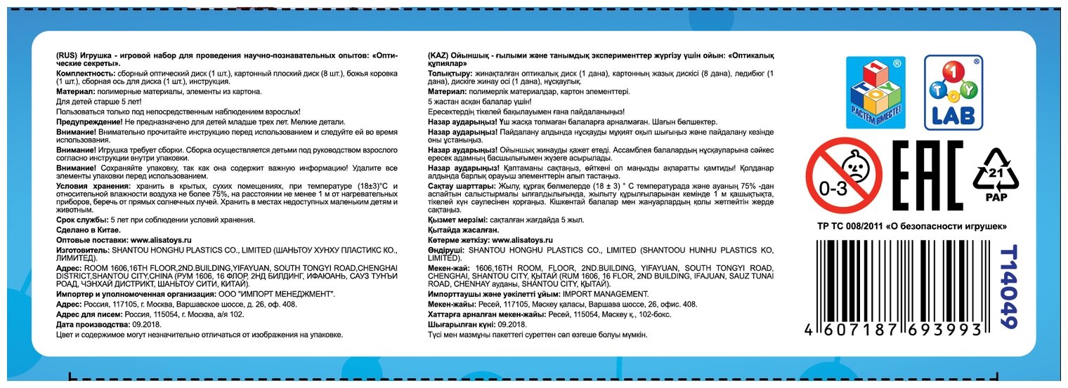 Набор для опытов 1TOY Т14049 Экспериментариум. Оптические секреты
