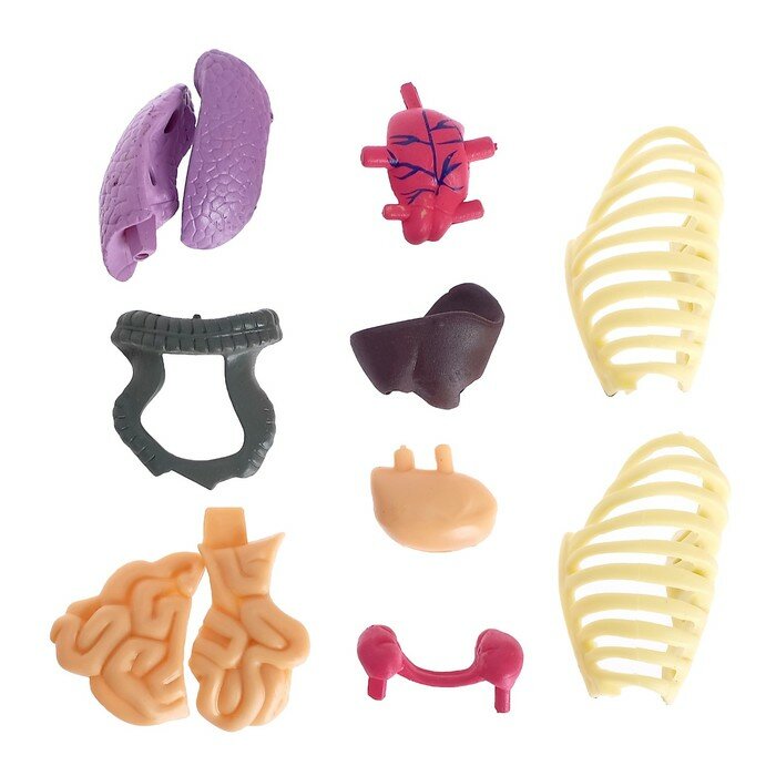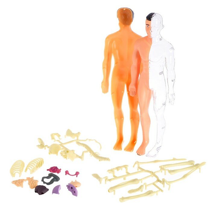| Минусы: | Прозрачная только половина тела, то есть, чтобы посмотреть на органы, надо снять непрозрачную, а она защелкивается крепко и все разлетается, даже если снимать очень осторожно. Есть не все органы, например мочевой пузырь отсутствует. |