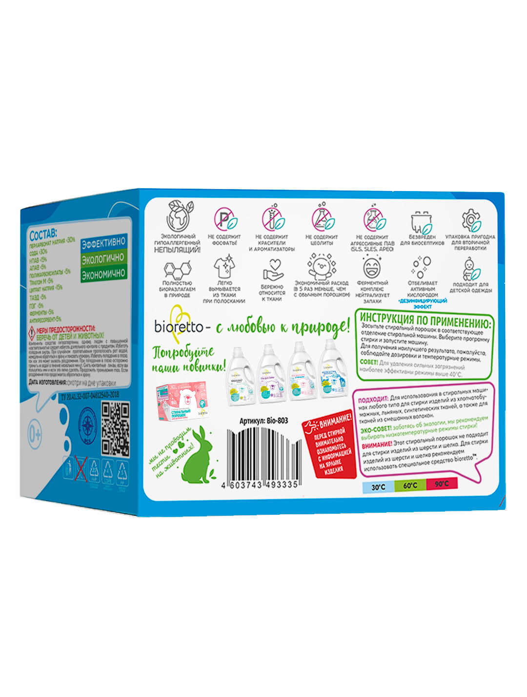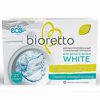 Экологичный концентрированный стиральный порошок для белого белья bioretto, "WHITE", 920 г интересное:
