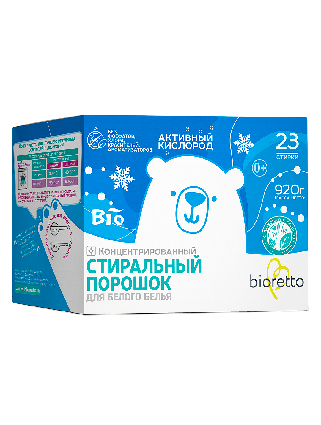 Купить Экологичный концентрированный стиральный порошок для белого белья bioretto, "WHITE", 920 г