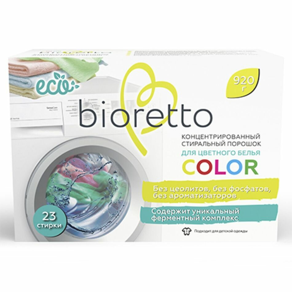 Экологичный концентрированный стиральный порошок для цветного белья bioretto, "COLOR", 920 г интересное: