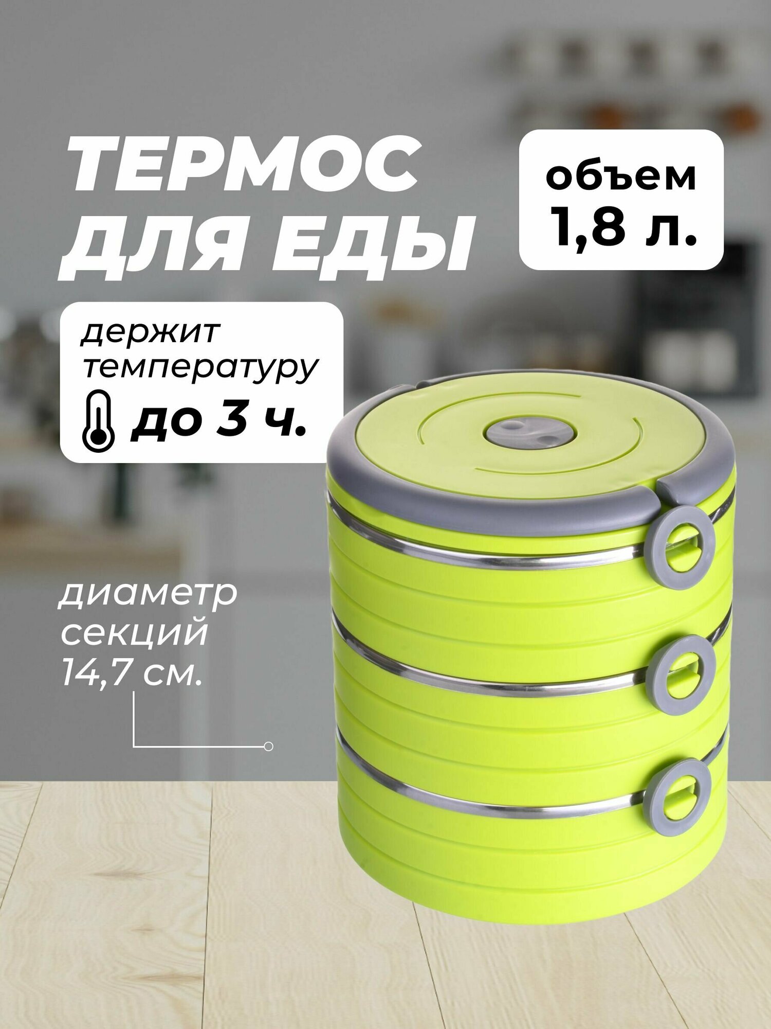 Термос для еды MAYER & BOCH 28778, 1.8 л, зеленый 3-х ярусный