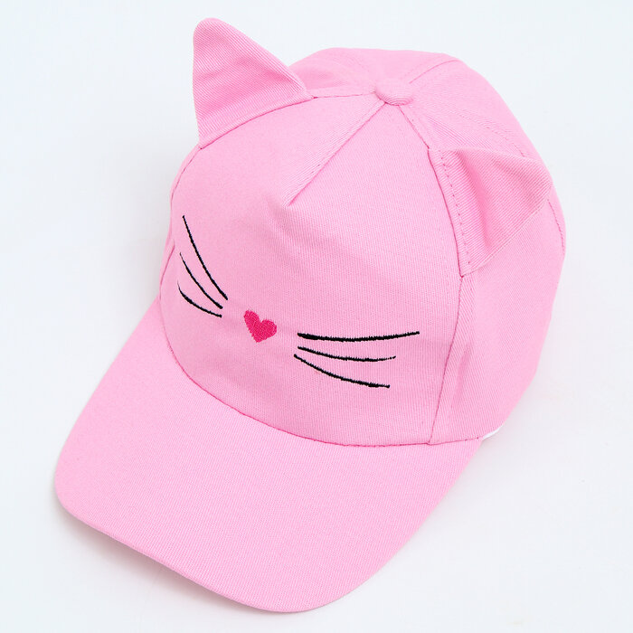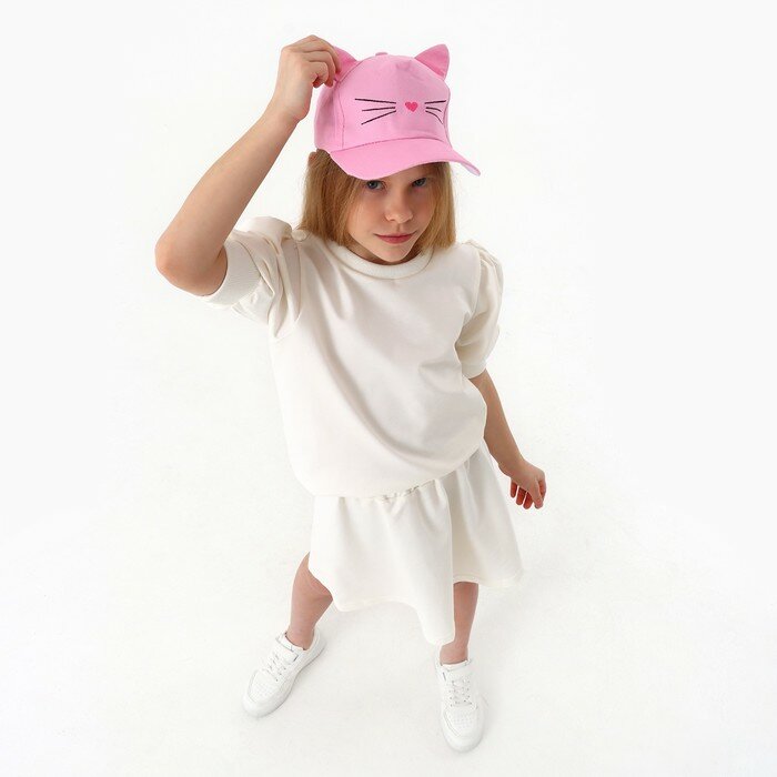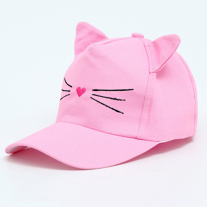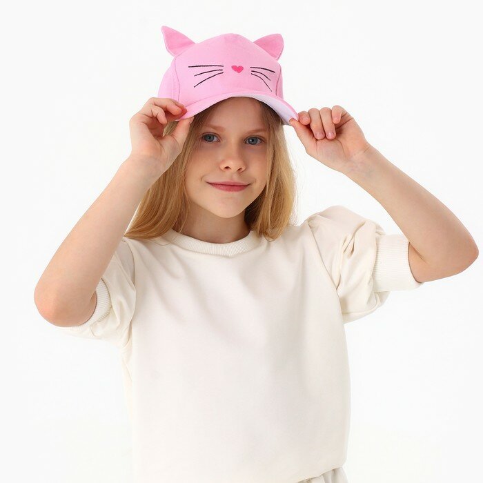 Купить Кепка детская для девочки "Котик", с ушками, цвет розовый р-р 52-54 5-7 лет