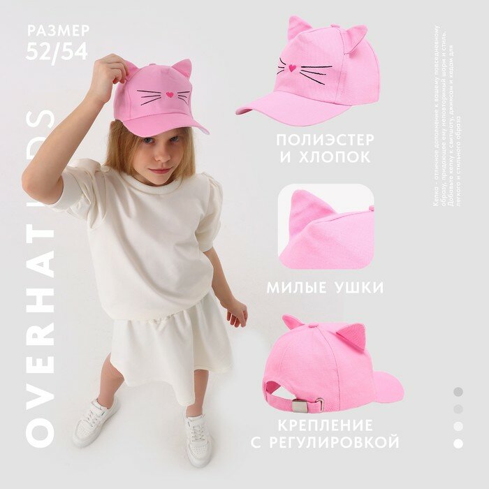 Кепка Overhat Котик для взрослых и детей, размер 52/54, розовый