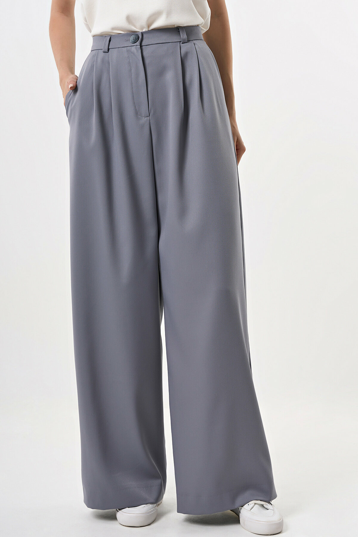 Брюки палаццо FLY серые с завышенной талией, размер 42