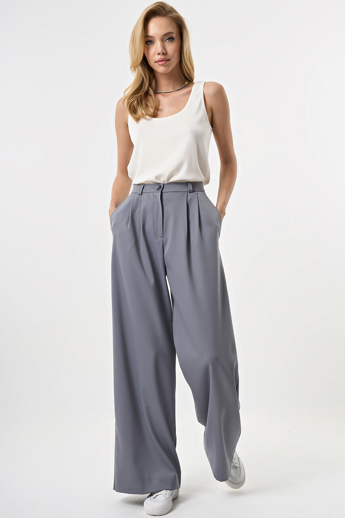 Брюки палаццо FLY серые с завышенной талией, размер 42