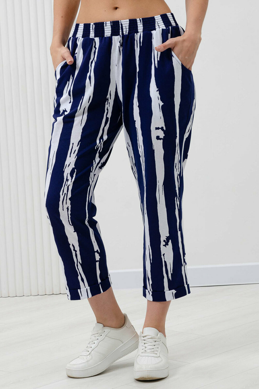 Купить Женские брюки в полоску зебра, размер 60