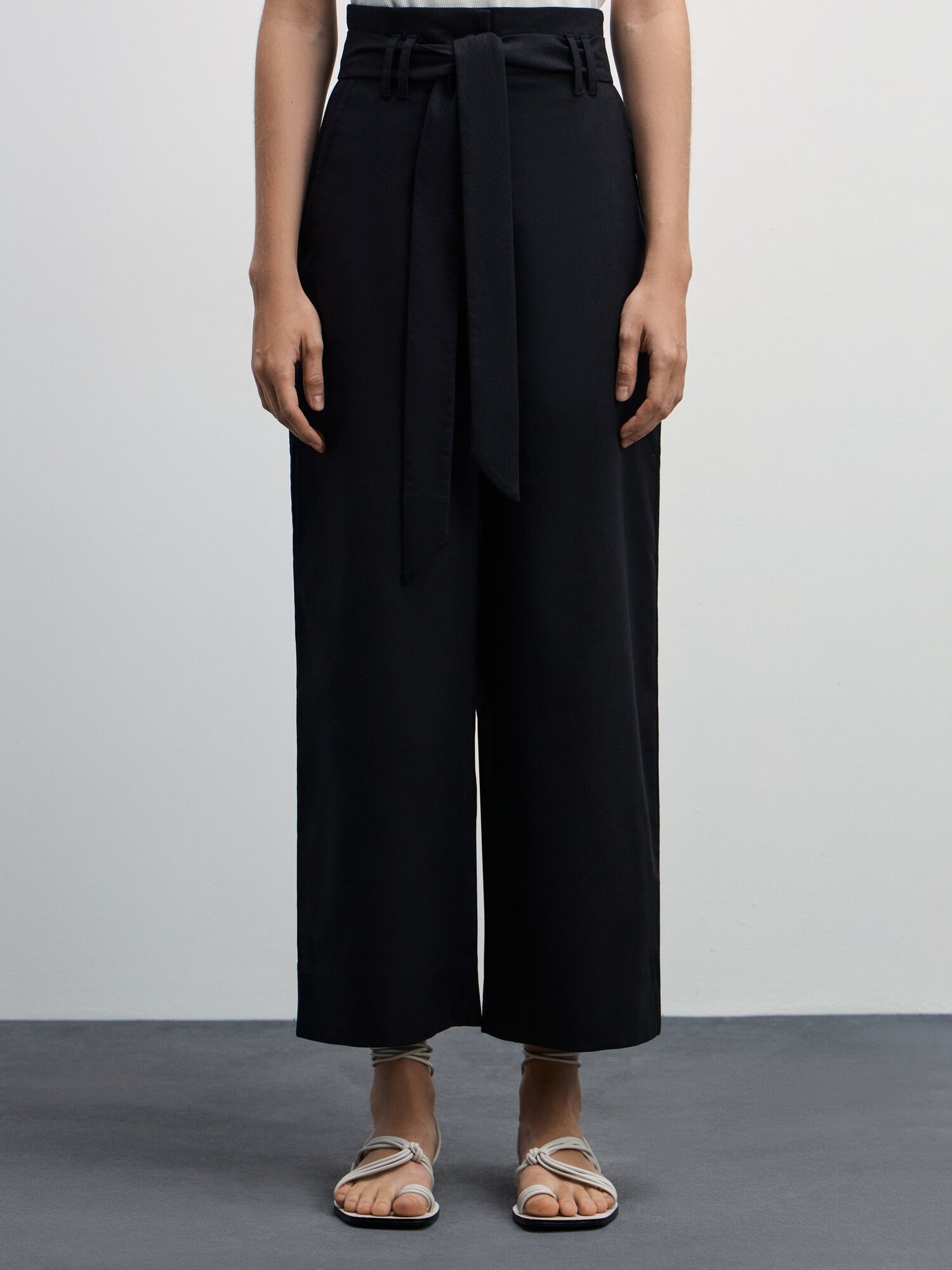 Zarina Брюки кюлоты изо льна, цвет Черный, размер 2XS (RU 40), 4327334734-50