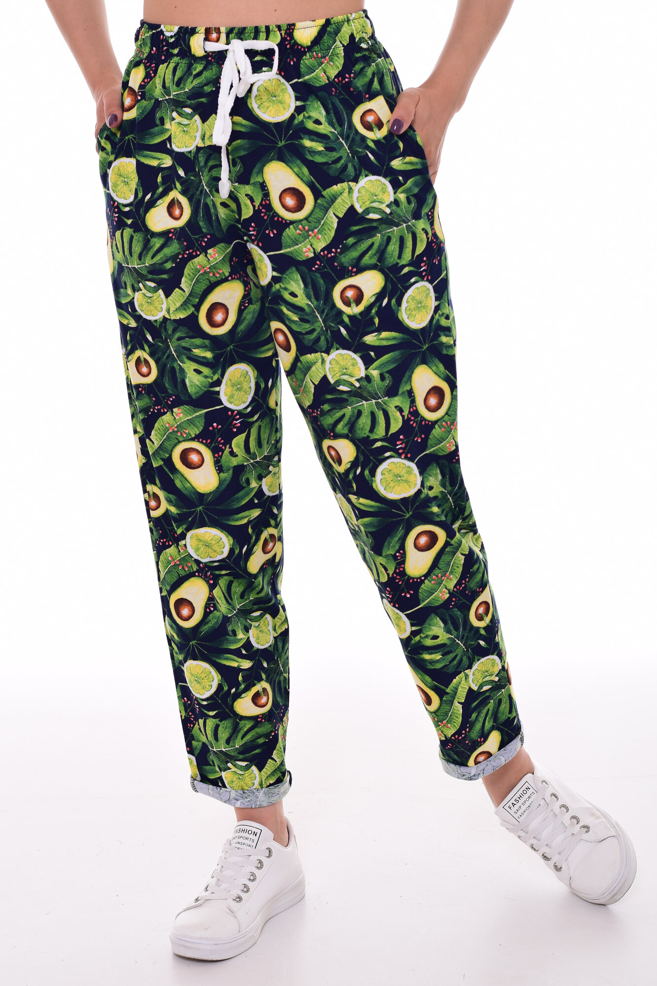Купить Брюки женские ЗефирТекс 8-031у (монстера), 44 размер, тропики, темный