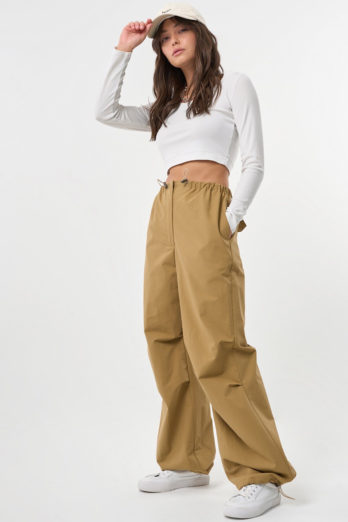 Брюки карго из плотной хлопковой ткани бежевые 48 р