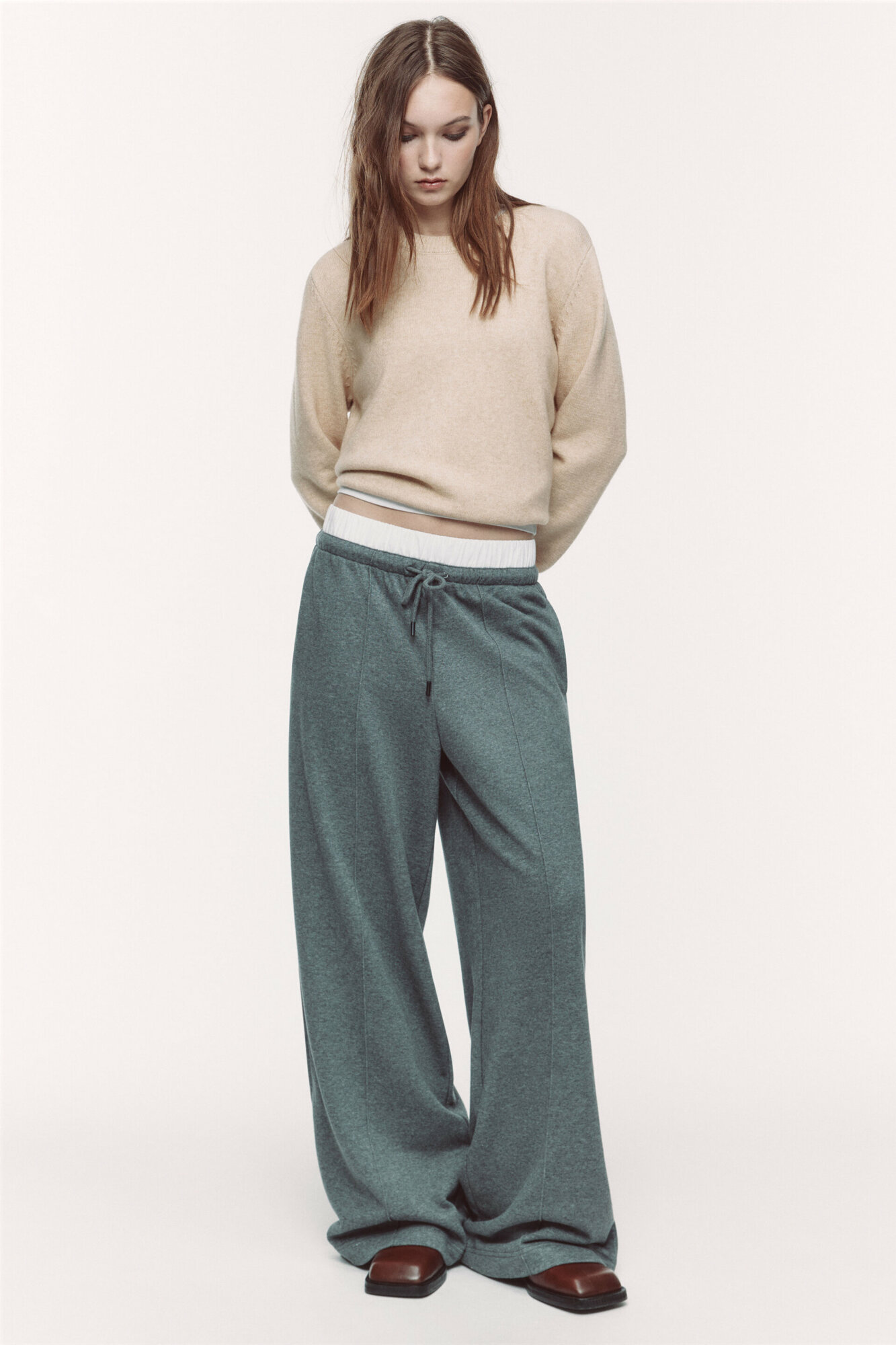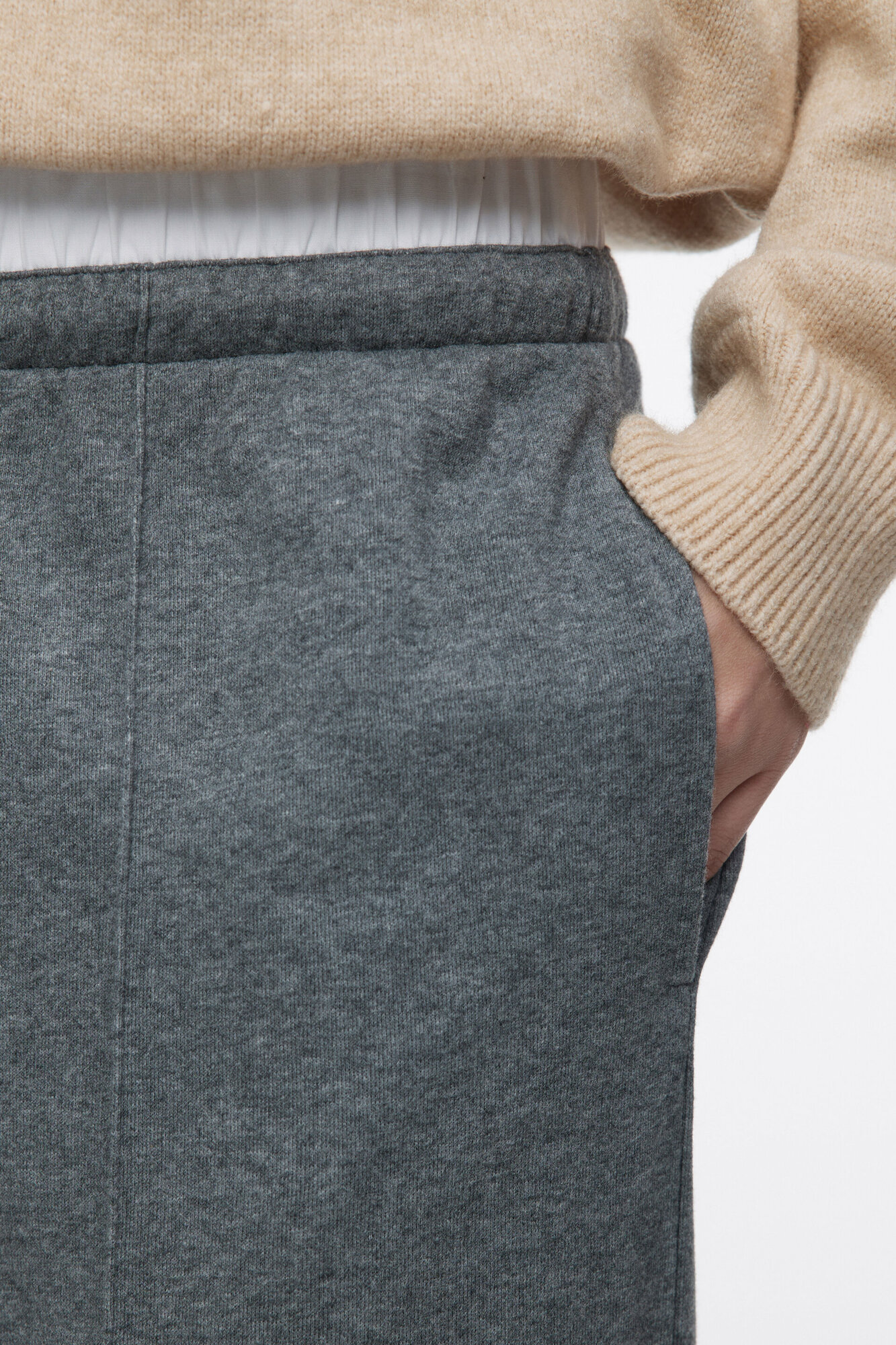 СохранитьБрюки женские Befree Брюки широкие трикотажные с двойным поясом 2411108005-38-L/170 серый меланж размер L/170 интересное: