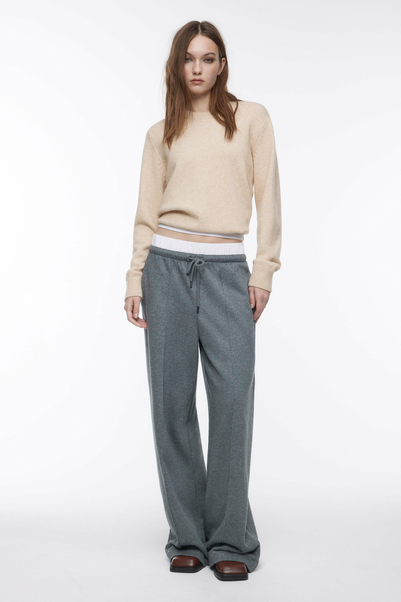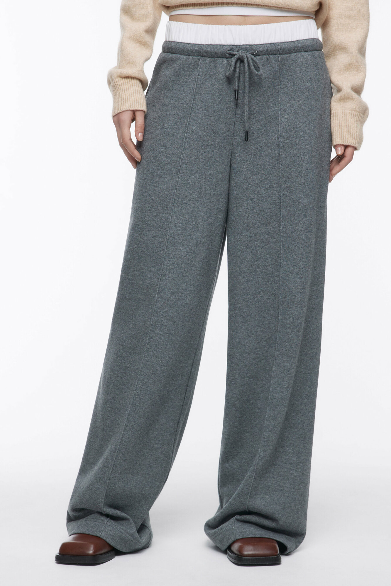 Брюки женские Befree Брюки широкие трикотажные с двойным поясом 2411108005-38-M/170 серый меланж размер M/170