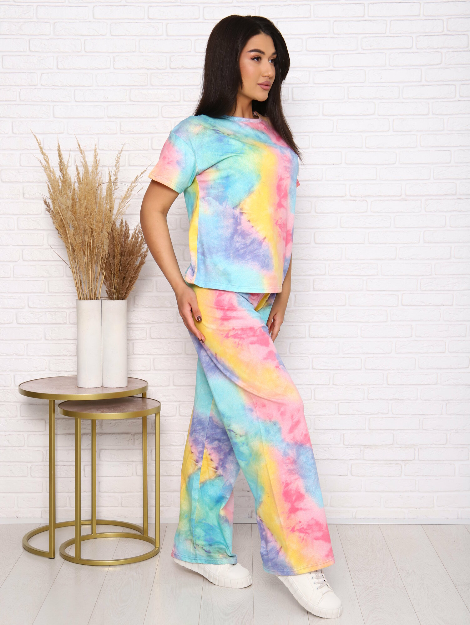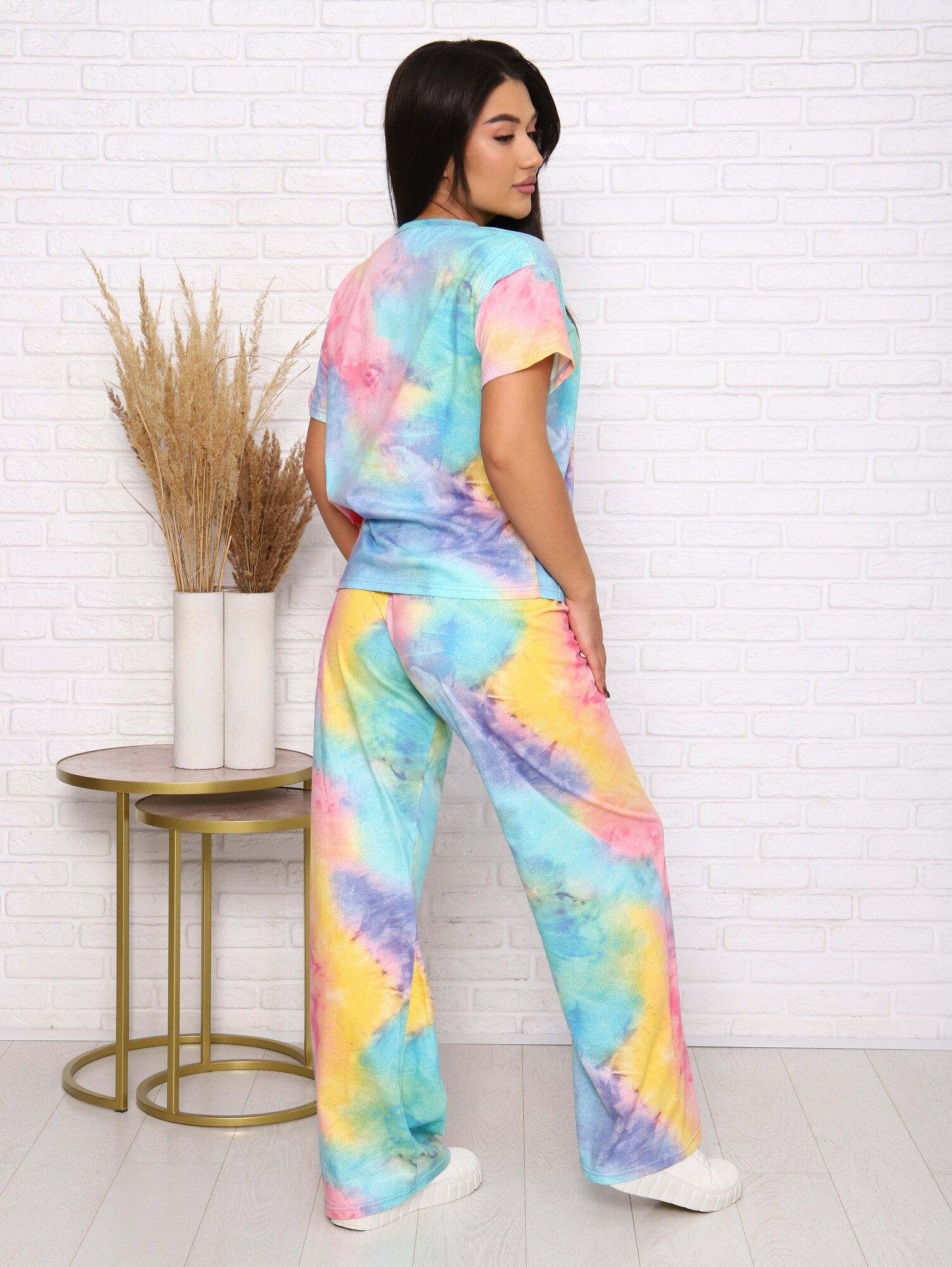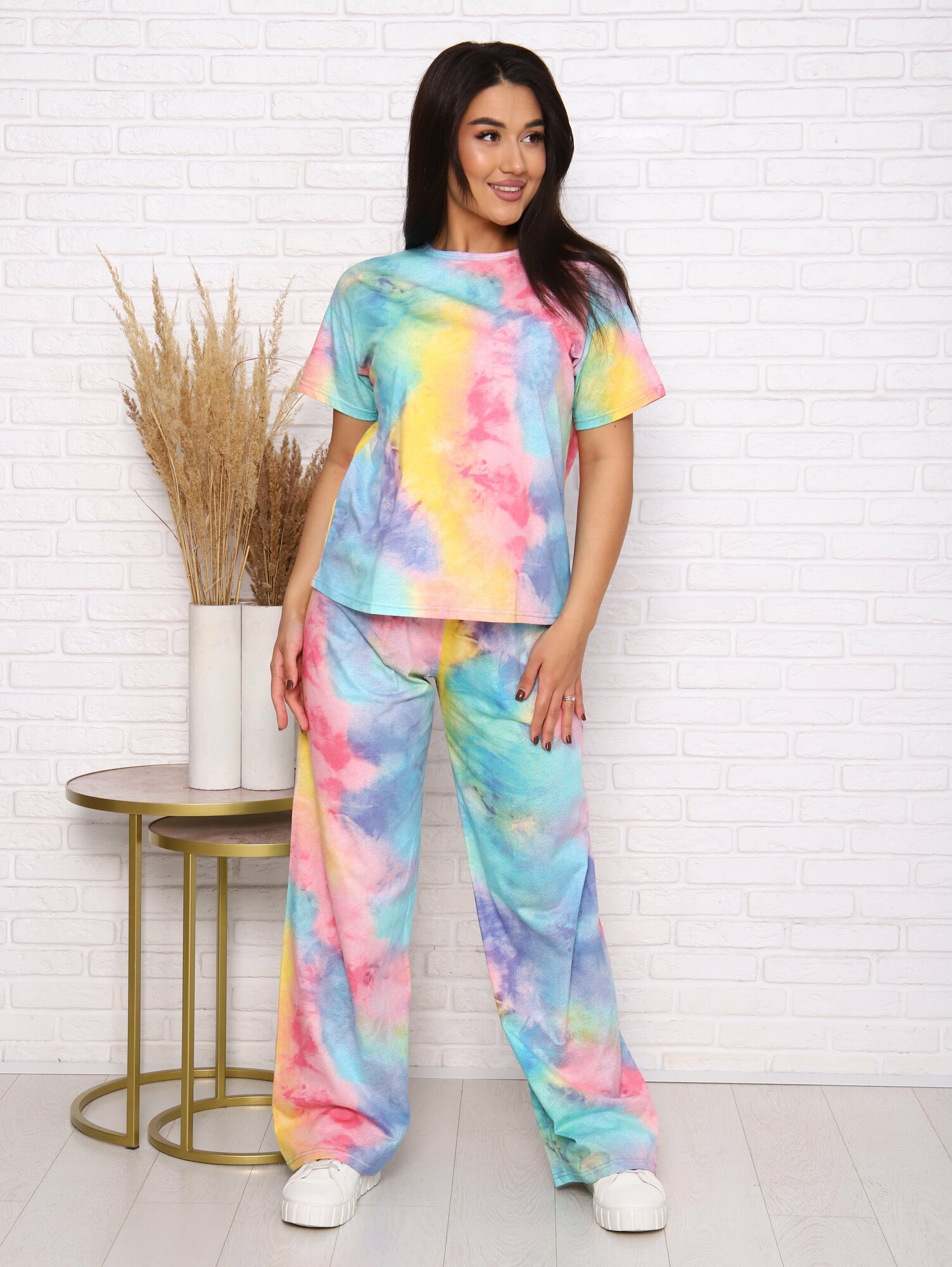 Купить Пижама LarChik с широкими штанами хлопок Тай Дай размеры 44-54 (46 размер)