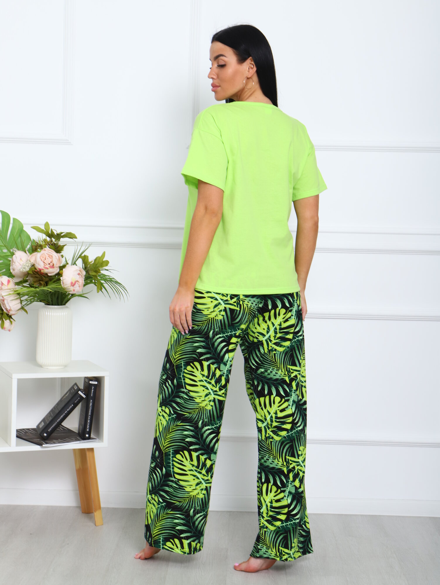Пижама LarChik с широкими штанами хлопок Монстэра,черно-зел размеры 44-54 (44 размер)