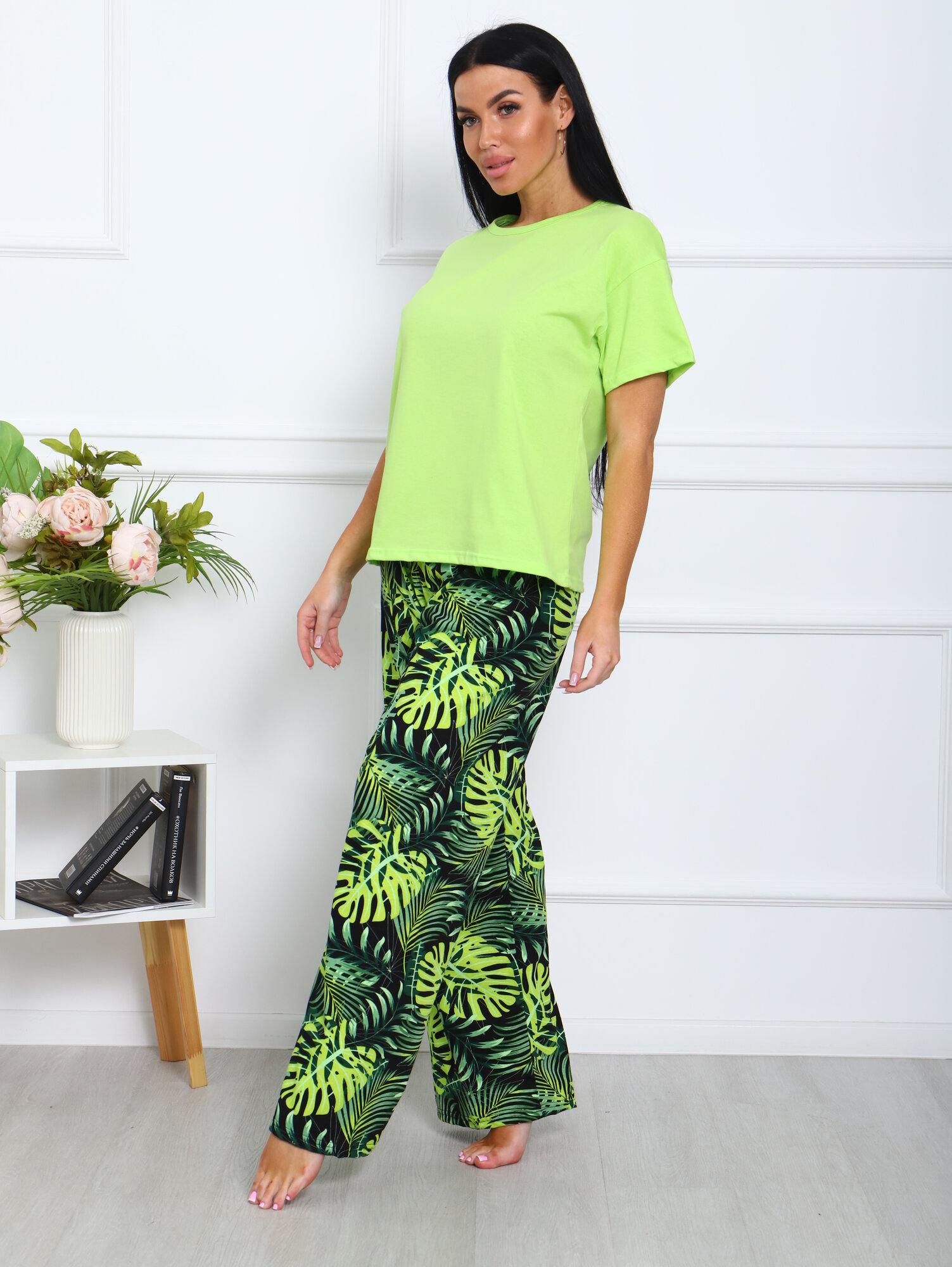Пижама LarChik с широкими штанами хлопок Монстэра,черно-зел размеры 44-54 (46 размер)