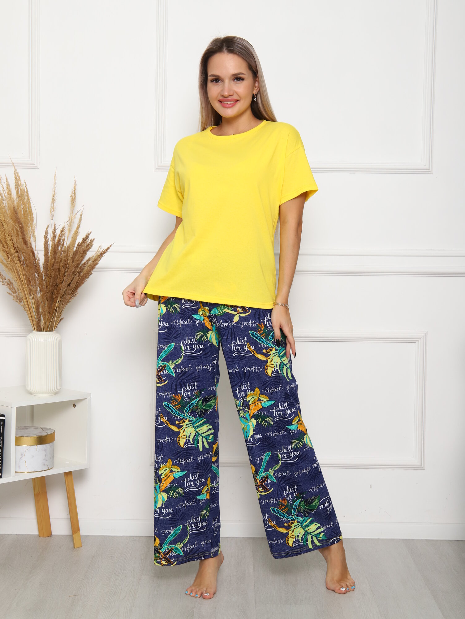 Купить Пижама LarChik из 100%-ного хлопка, тропик, желтый, широкие брюки 48/50
