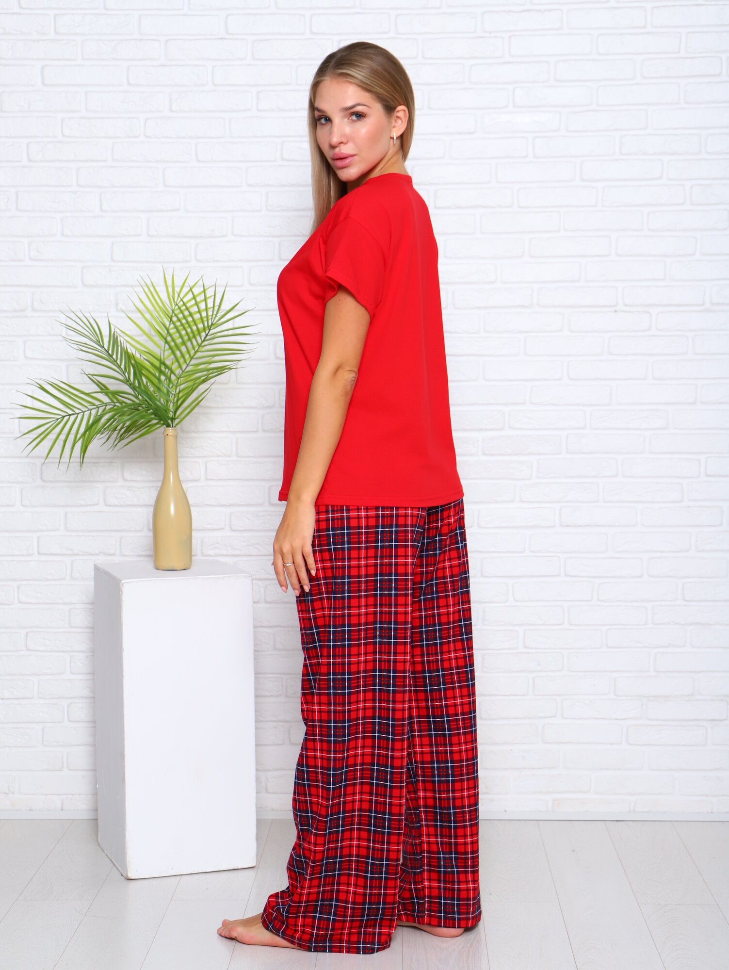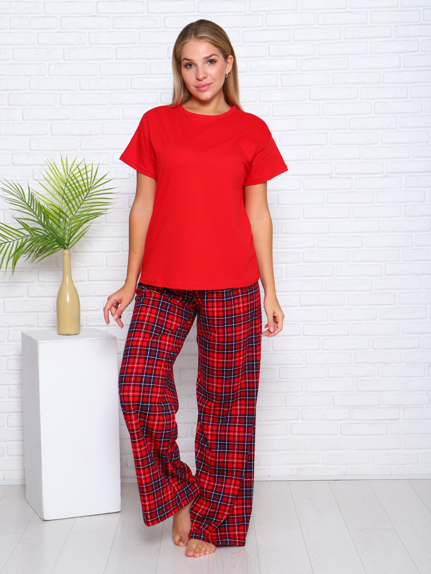Пижама LarChik из 100%-ного хлопка, красная клетка 3, широкие брюки 44/46