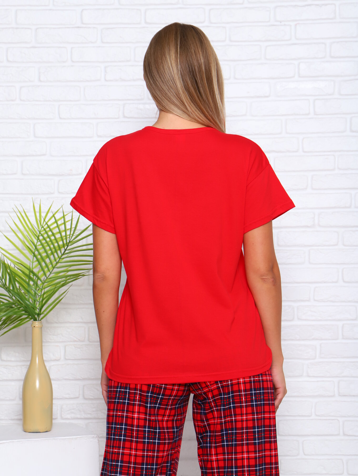Купить Пижама LarChik из 100%-ного хлопка, красная клетка 3, широкие брюки 48/50