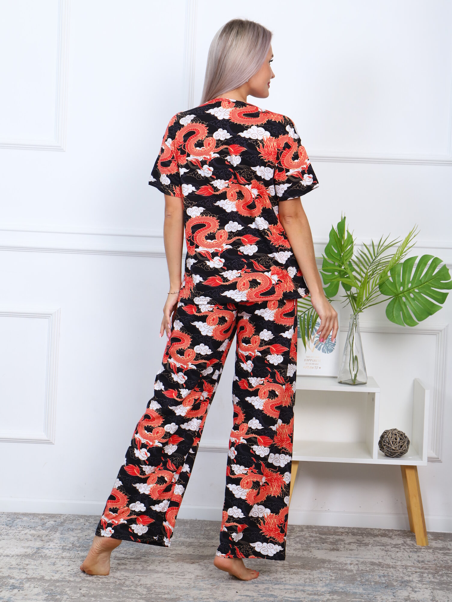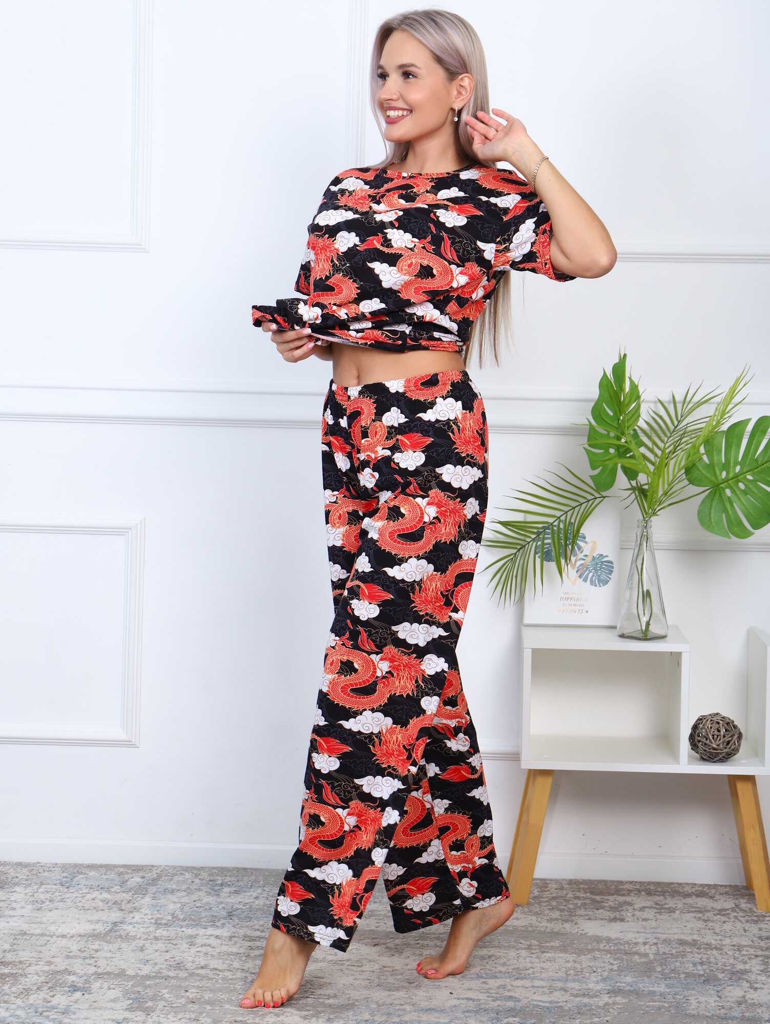 Купить Пижама LarChik из 100%-ного хлопка, драконы, черный, широкие брюки 48/50