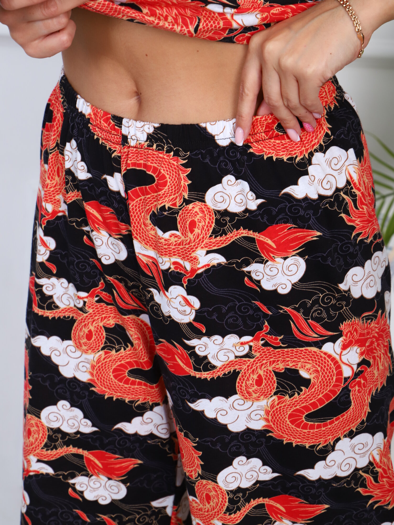 Пижама LarChik из 100%-ного хлопка, драконы, черный, широкие брюки 44/46