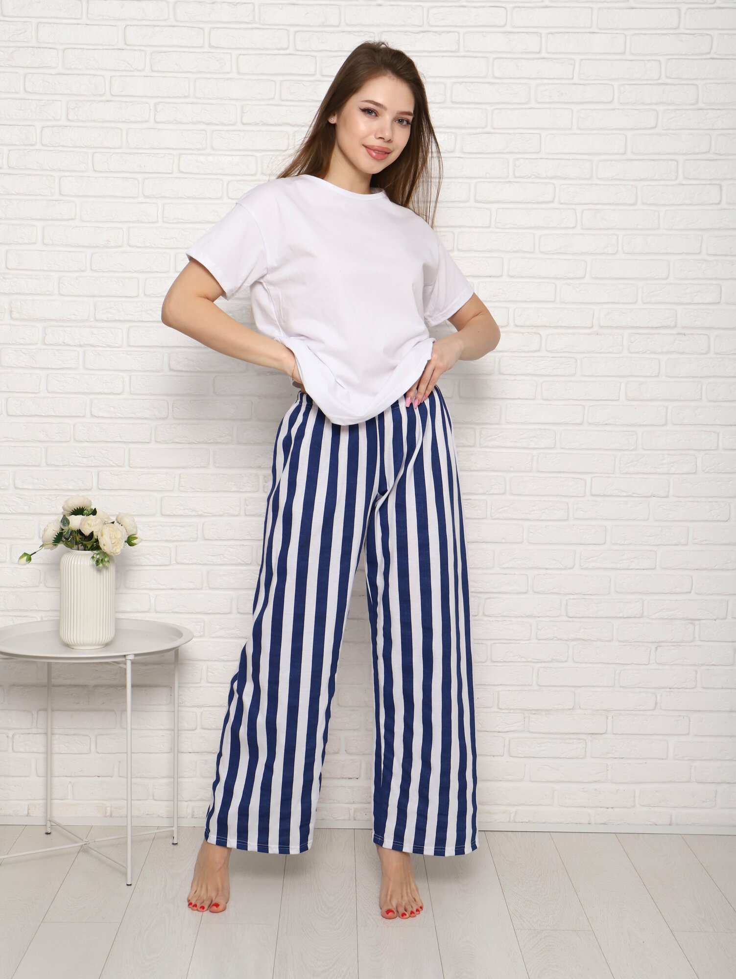Купить Пижама LarChik с широкими штанами хлопок полоска белая размеры 44-54 (48 размер)