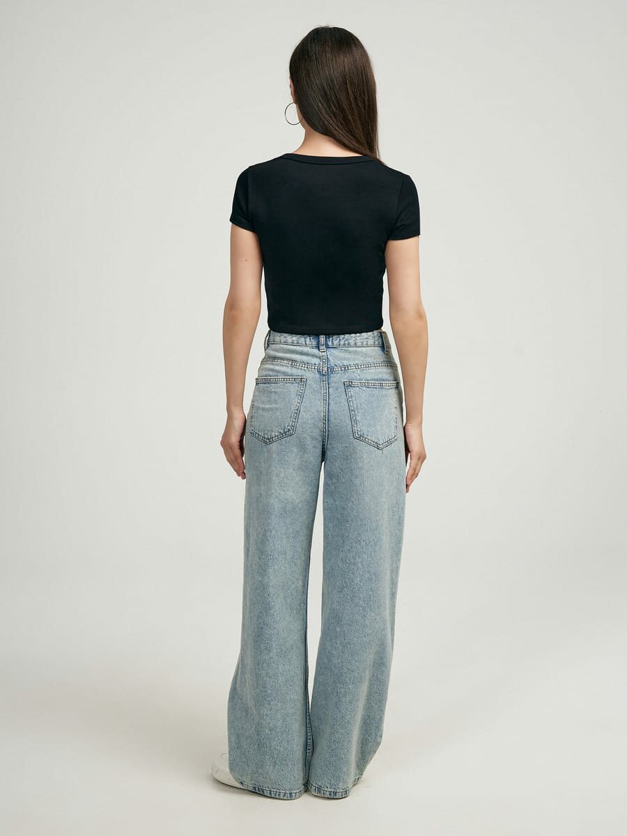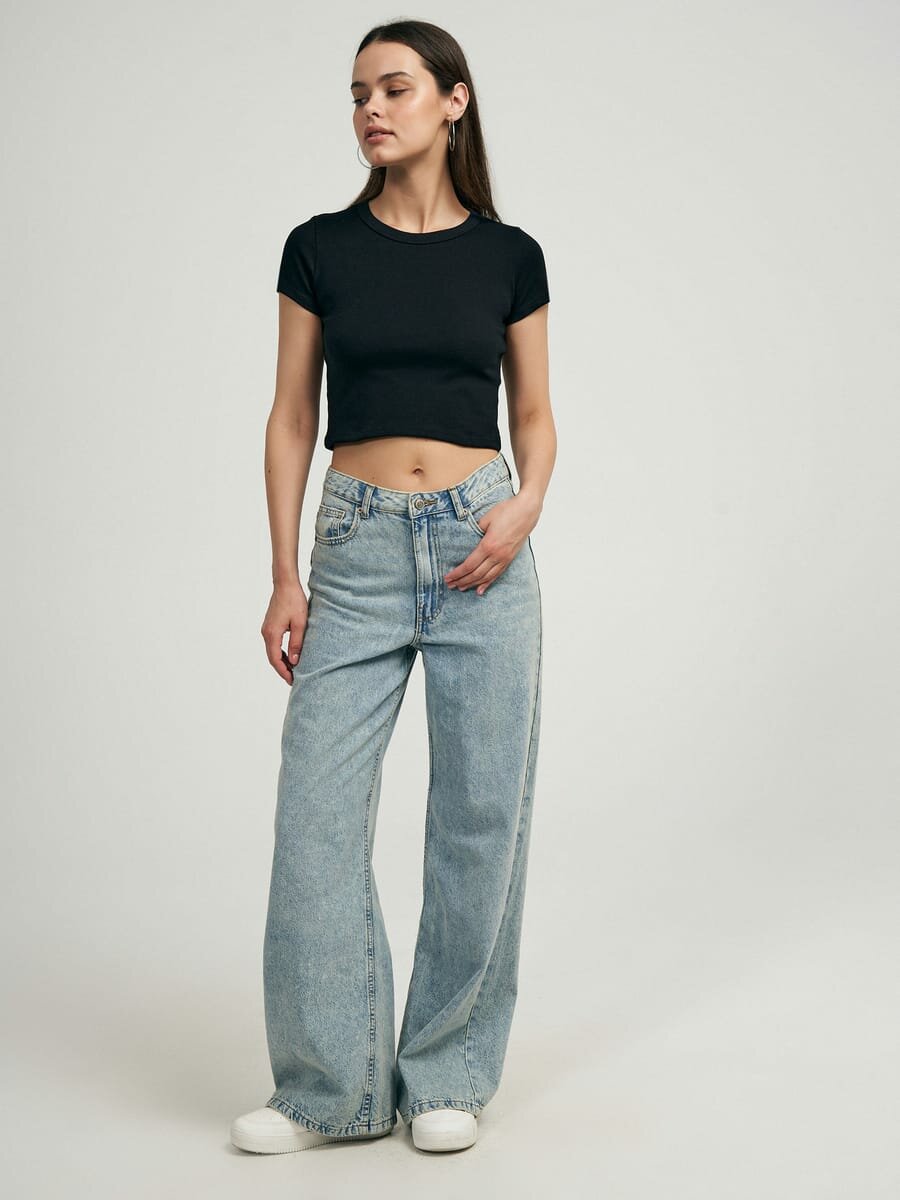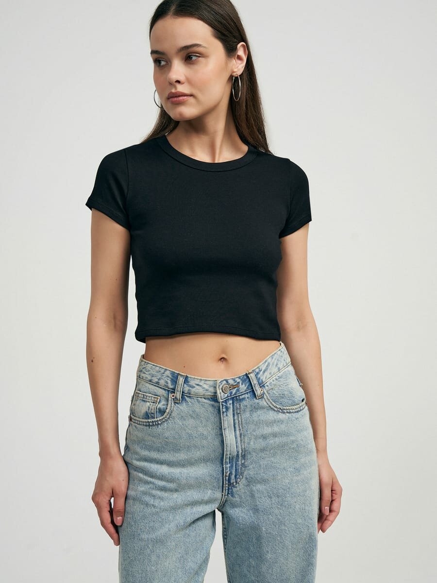 Кроп-топ однотонный с короткими рукавами твое, арт. 102385,черный,XS