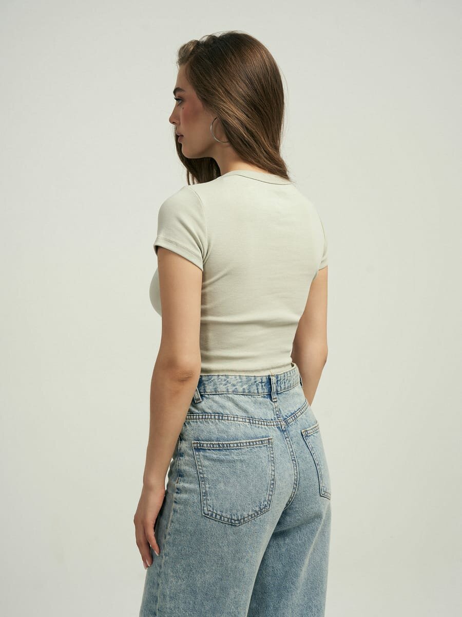 Кроп-топ однотонный с короткими рукавами твое, арт. 102385,серый,XS