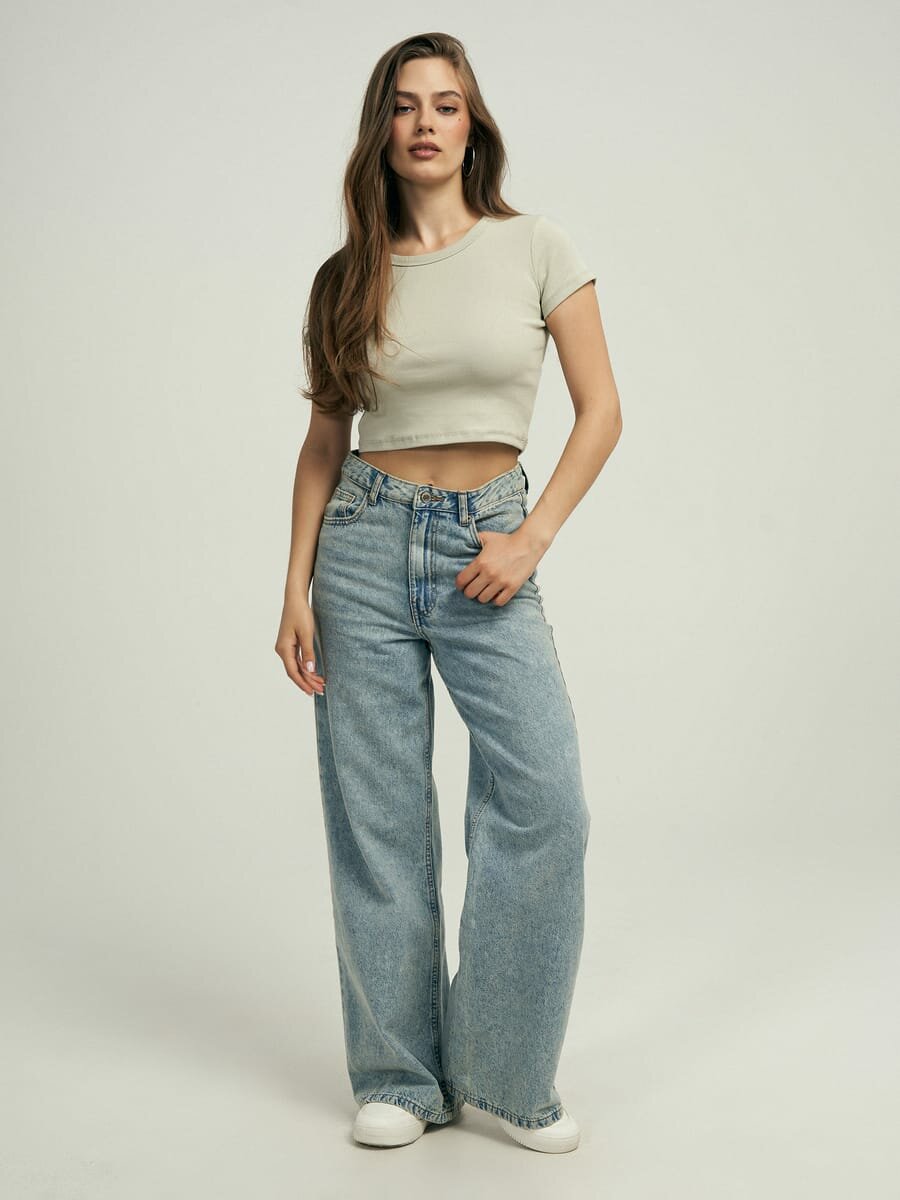 Кроп-топ однотонный с короткими рукавами твое, арт. 102385,синий,XS