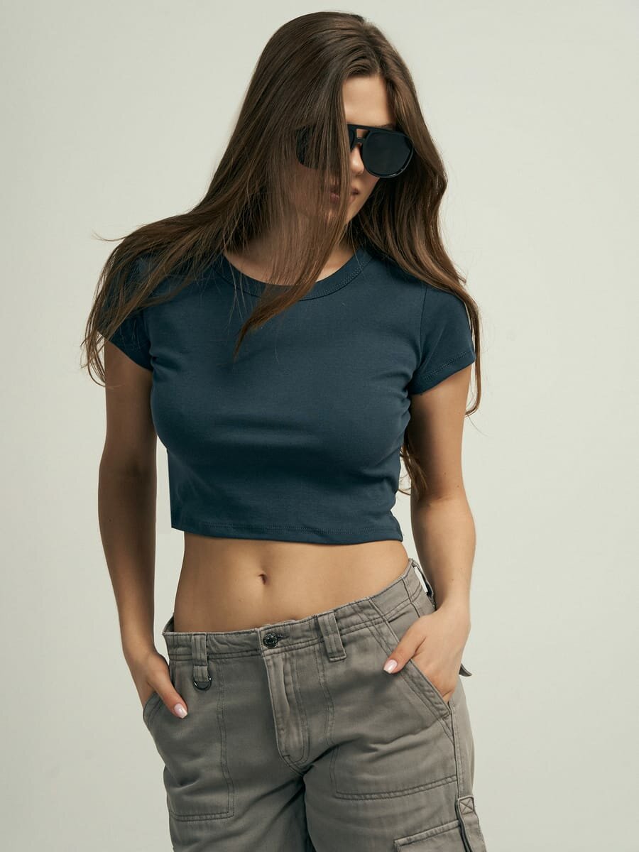 Кроп-топ однотонный с короткими рукавами твое, арт. 102385,синий,XS