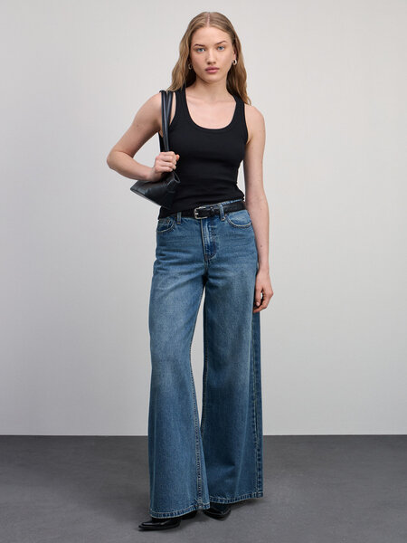 Купить Zarina Базовый топ в рубчик, цвет Черный, размер M (RU 46), 4328506406-50
