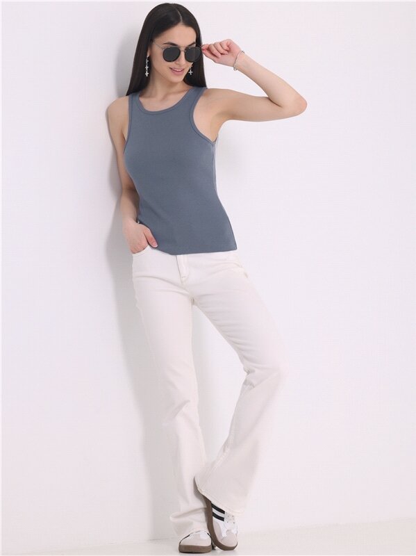Топ - майка женский летний хлопок лапша в рубчик Апрель 1ЖНС3952023/1190/1902/*/*/*/*/* синий 100-164