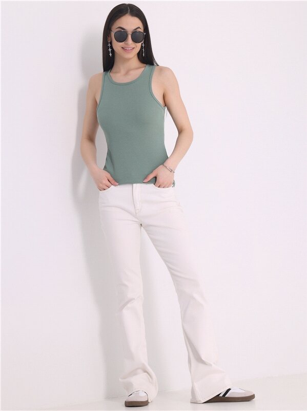 Топ – майка женский белый трикотажный лапша в рубчик Апрель 1ЖНС4320023/ 1190/31/*/*/*/*/* белый 108-164