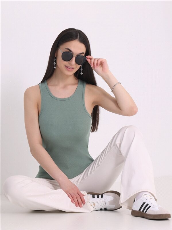 Купить Топ женский летний майка под пиджак Апрель 1ЖНС3952023/1420/2027/*/*/*/*/* зеленый,серый 88-164