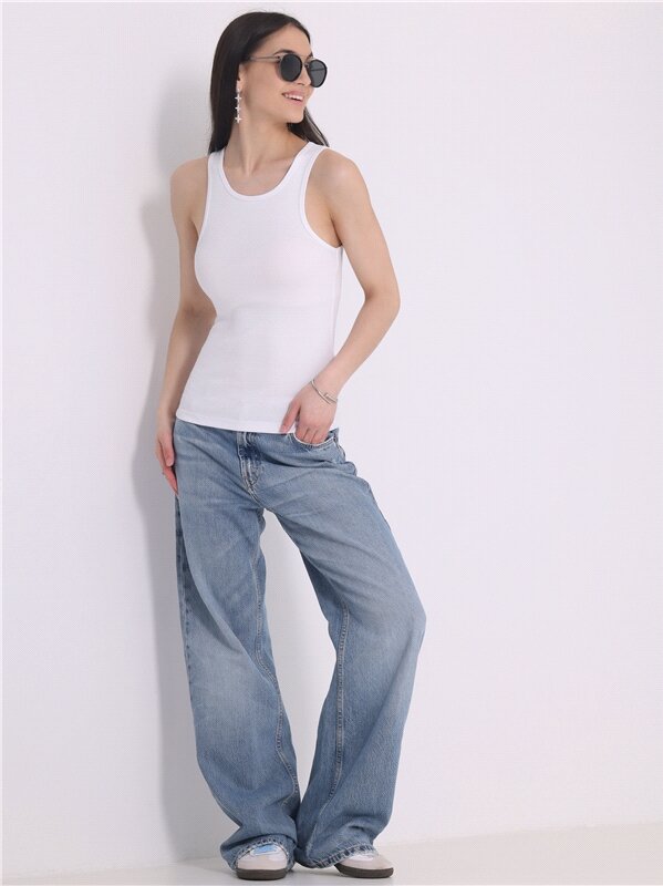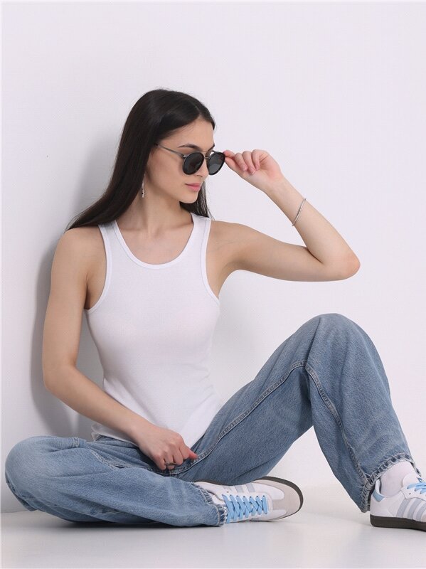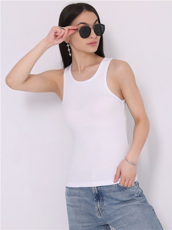 Топ – майка женский белый трикотажный лапша в рубчик Апрель 1ЖНС4320023/ 1190/31/*/*/*/*/* белый 104-164