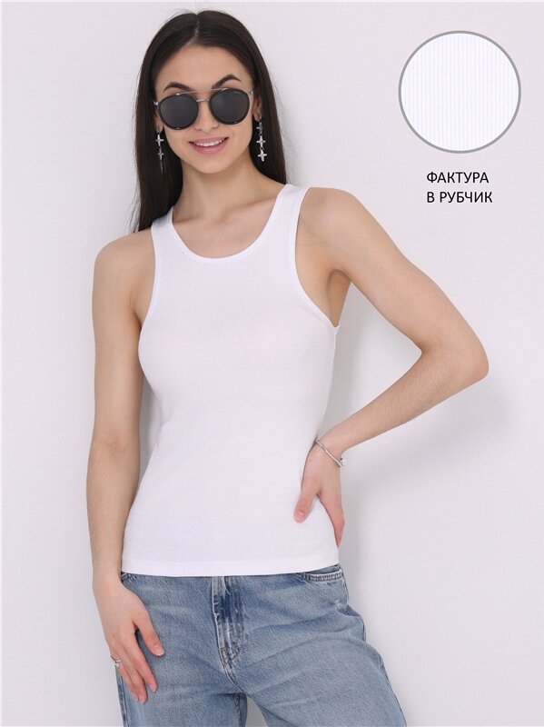 Топ – майка женский белый трикотажный лапша в рубчик Апрель 1ЖНС4320023/ 1190/31/*/*/*/*/* белый 108-164