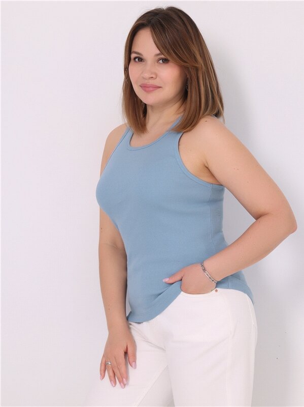 Топ - майка женский летний хлопок лапша в рубчик Апрель 1ЖНС3952023/1190/1902/*/*/*/*/* синий 100-164