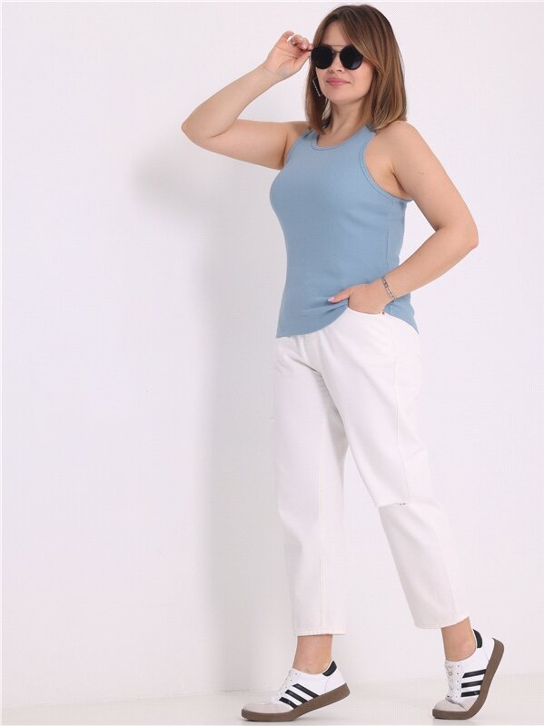 Топ – майка женский белый трикотажный лапша в рубчик Апрель 1ЖНС4320023/ 1190/31/*/*/*/*/* белый 108-164