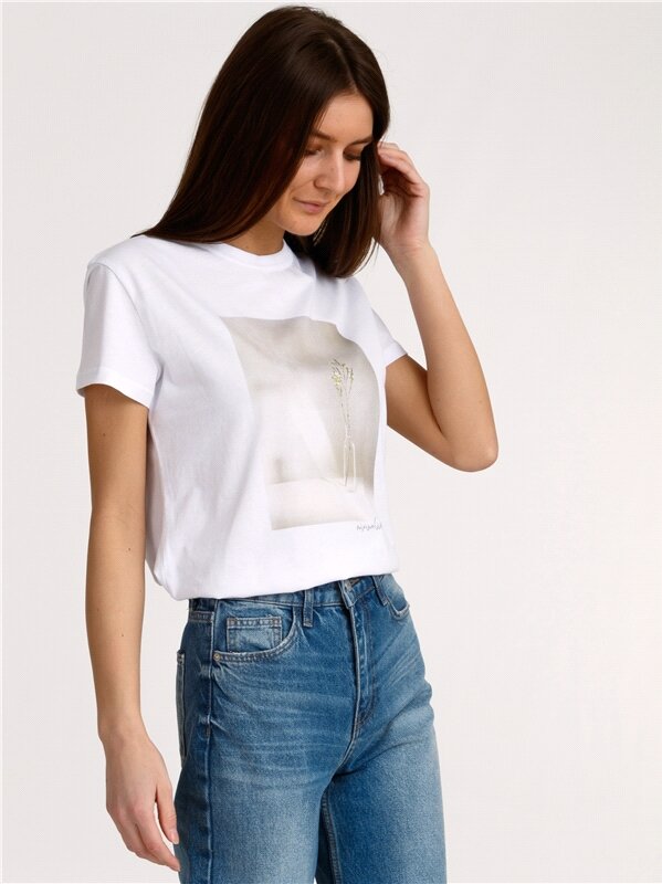 Футболка женская белая с принтом хлопок 100% Апрель 1ЖДФК2657001/1190/31/*/3373/*/*/* белый 100-164