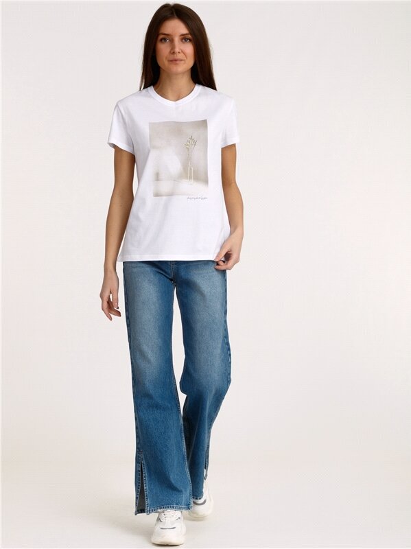 Футболка женская белая с принтом хлопок 100% Апрель 1ЖДФК2657001/1190/31/*/3364/*/*/* белый 100-164
