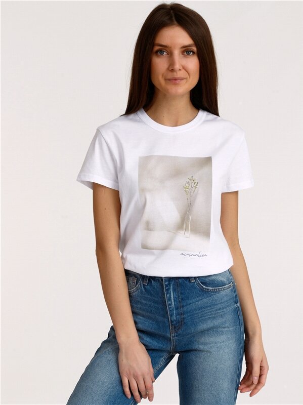 Футболка женская белая с принтом хлопок 100% Апрель 1ЖДФК2657001/1190/31/*/2732/*/*/*/1 белый 96-164