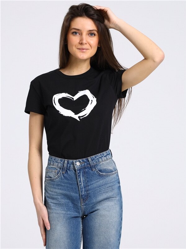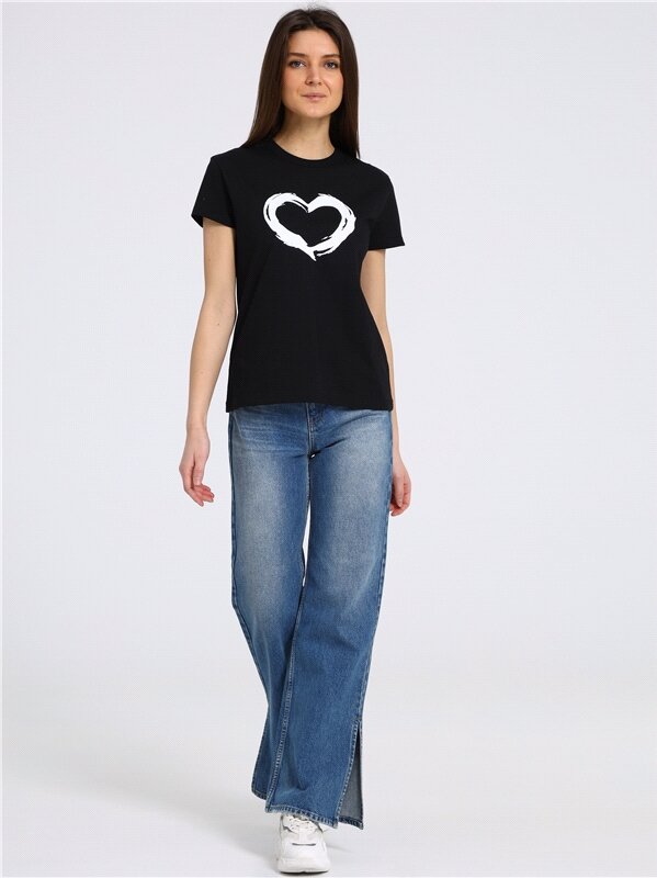 Футболка женская черная с принтом хлопок 100% Апрель 1ЖДФК2657001/1190/599/*/3022/*/*/* черный,белый 100-164