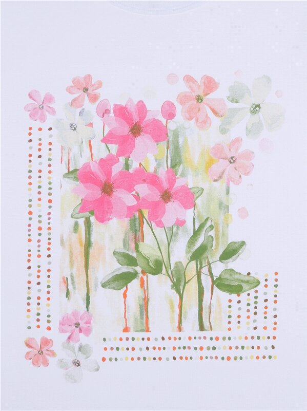Купить Футболка женская белая с принтом хлопок 100% Апрель 1ЖДФК2657001/1190/31/*/3433/*/*/* белый,розовый,зеленый 92-164