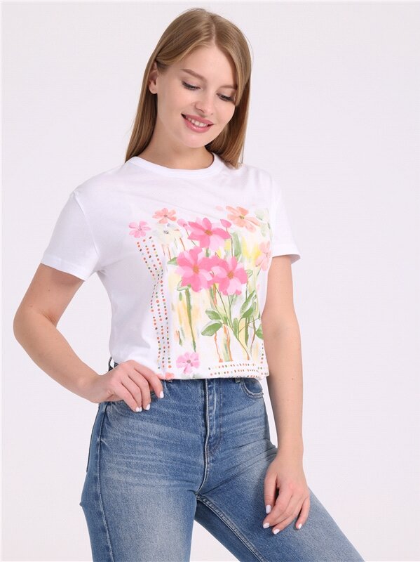 Футболка женская с принтом хлопок 100% Апрель 1ЖДФК3784001/1190/31/*/3100/*/*/* белый 100-164