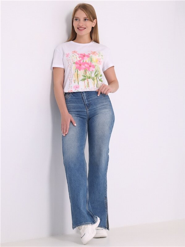 Футболка женская с принтом хлопок 100% Апрель 1ЖДФК3969001/1190/1902/*/3059/*/*/* синий 116-164