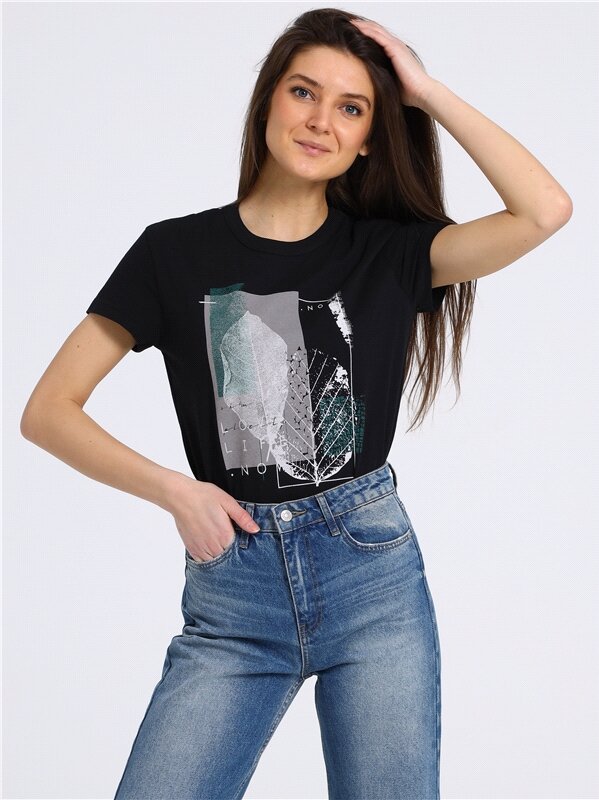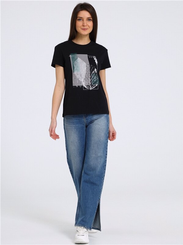 Футболка женская черная с принтом хлопок 100% Апрель 1ЖДФК3298001/1190/599/*/3436/*/*/* черный,мультиколор 108-164