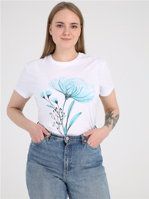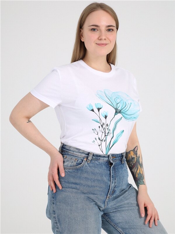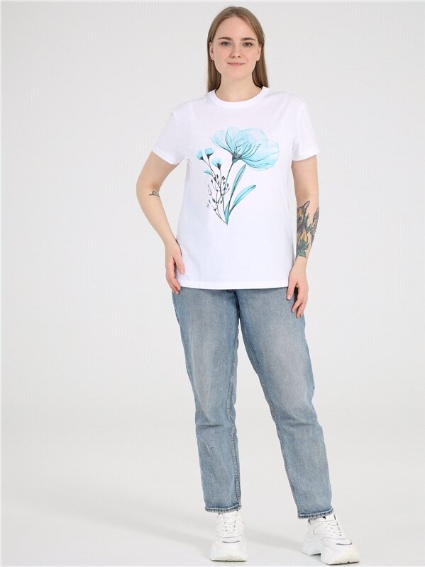 Футболка женская с принтом хлопок Апрель 1ЖДФК3965001/1354/2601/*/3424/*/*/* голубой 84-164