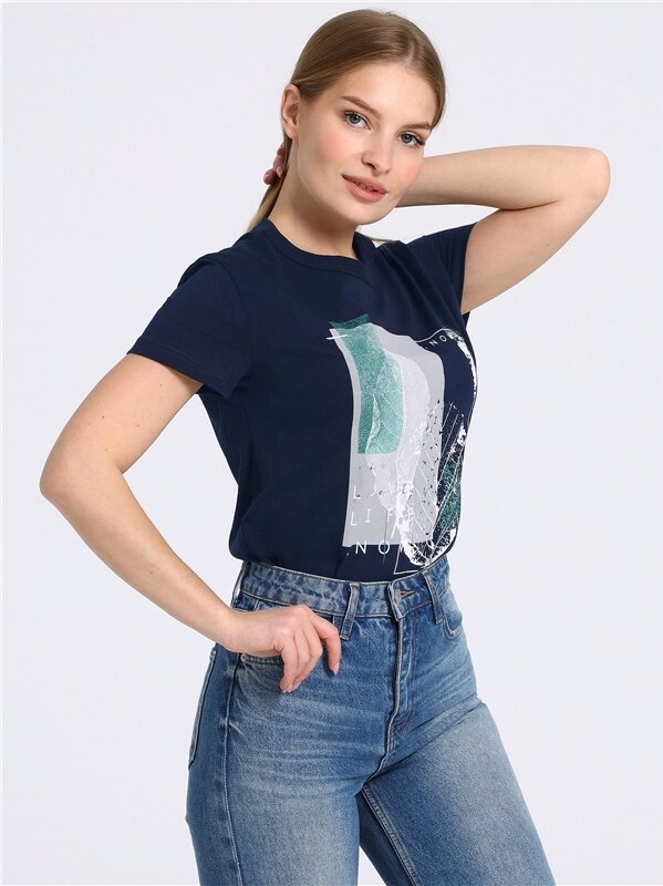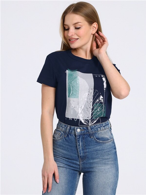 Футболка женская с принтом хлопок 100% Апрель 1ЖДФК2657001/1190/1902/*/2472/*/*/* синий 100-164