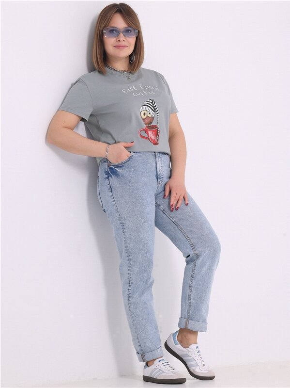 Футболка женская с принтом хлопок 100% Апрель 1ЖДФК2657001/1190/2419/*/3334/*/*/* голубой,серый,белый 96-164