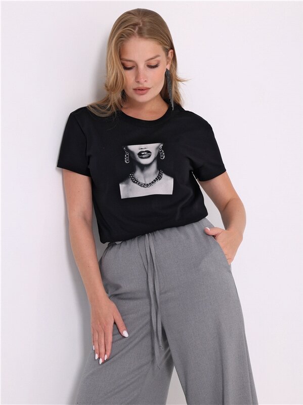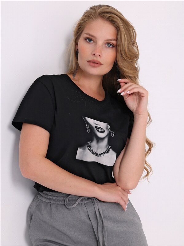 Футболка женская черная с принтом хлопок 100% Апрель 1ЖДФК2657001/1190/599/*/3022/*/*/* черный,белый 96-164